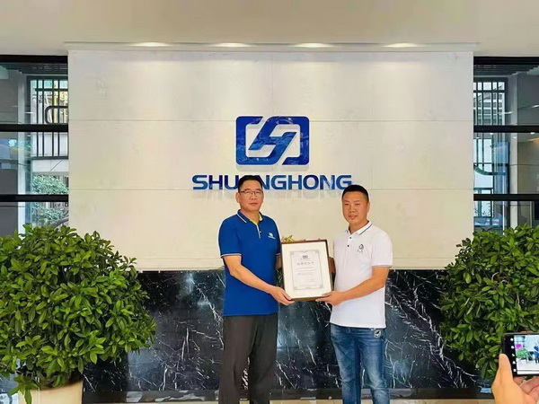 雙宏化工董事長徐建成授牌給公司總經(jīng)理李朝輝并合影留念!